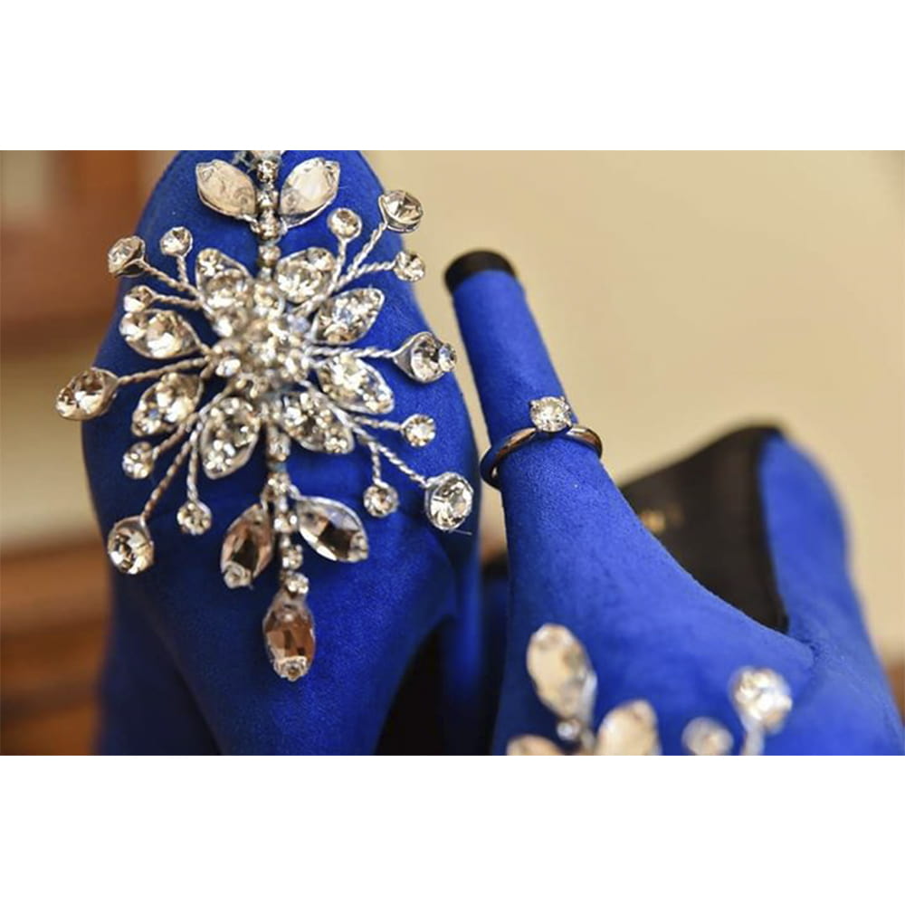 Pero una mejor opción son… ¡tus zapatillas¡ (en donde podrás matar dos pájaros de un tiro al usar algo nuevo y algo azul), Castle Shine hemos hecho algunos modelos en donde tú puedes personalizarlos a tu estilo, el diseño, la altura del tacón, la decoración, material, en fin, las posibilidades son infinitas.