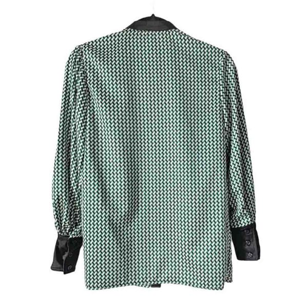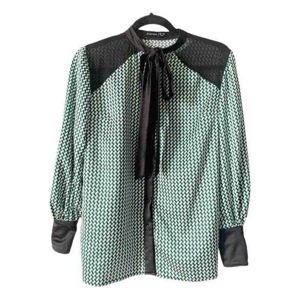 El estampado geométrico en tonos verde, blanco y negro viene de la inspiración de los años 60, fusionando en esta prenda el pasado y presente.